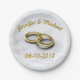Wedding Date Bride & Groom Customisable Gold Rings Paper Plate