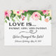 Change the date card for a wedding featuring a floral border and "Love is Patient...very, very patient" as text at the top. The bottom two lines can be changed to say what you want about your wedding date change.