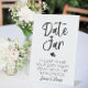 This fun and handlettered style 'Date Jar - please share your date night ideas with the newlyweds' tabletop sign is perfect as an alternative guest book idea or as a wedding guest activity