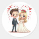Includes 20 small stickers on one sheet. Cherish your special day with these adorable cartoon bride and groom stickers. Perfect for decorating wedding albums, invites, and mementos.