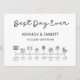Your guests will love reading all the details of your wedding on these lovely Wedding Timeline Programs! It features "Best Day Ever" top and centre in a beautiful handwritten font and you can easily edit the icon timeline to accommodate your wedding day schedule. This 5.5 x 7.5 program is perfect if your wedding is at a country club, resort or even the courthouse. It's simple, trendy and minimalist and the fonts are modern and easy to read. Make it as unique as you!