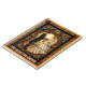 A simple wedding design but steeped with formality and tradition. The stained glass design highlights the sacredness of the occasion while the traditional clothes of the bride and groom highlight traditional cultural norms and formality. Customisable words such as names and slogans. Marked as “generativecontent”.