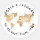 Wedding Destination World Map Gold Removable Heart Classic Round Sticker