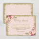 Blush Pink Gold Glitters Floral Wedding Details Card.