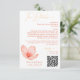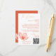 A modern wedding detail card with trendy bright orange text and grapefruit red design elements. This shade of orange is called Verona Sunset. Details in faux gold, a silhuette of a delicate flower. Modern typography and on the back add your own photo in arched shape. Make sure to add your QR code website.