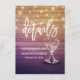 Wedding directions / Accommodations and Information Cards / Guest Information Card / Wedding Details cards Templates - Elegant Lettering Script, Vintage Champagne Glasses and String Lights on Rustic Wood Background.