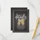 Elegant Faux Gold Foil Pineapple Couple on Black Floral Damask Linen Background.