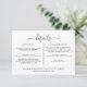 Elegant and simple wedding De template card featuring a hand lettered typography script. Wedding details information template enclosure card. A template provides multiple lines for your detailed information, including reception, accommodations, and website. This casual script and the white space give a simple and minimalistic feel.