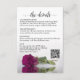 This beautiful wedding enclosure card is designed to give you extra space for whatever information your guests may need, including RSVP, registry, reception, travel, accommodations, etc. as well as a customisable QR code directing your guests to your website for more information. The card features a gorgeous design with a single magenta, berry, or cassis purple coloured rose and a lacy script calligraphy title reading "the details."