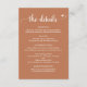 Wedding Details Enclosure Card, in copper rust terracotta brown theme, where you can include your wedding reception, accommodation options, your wedding website and others.