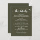 Wedding Details Enclosure Card, in olive green theme, where you can include your wedding reception, accommodation options, your wedding website and others.