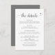 Wedding Details Enclosure Card, in dark grey theme, where you can include your wedding reception, accommodation options, your wedding website and others.