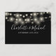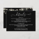 An elegant black and white wedding details information enclosure card featuring pretty string lights. Personalize with your special details set in stylish typography and your names and wedding date on the reverse. Designed by Thisisnotme©