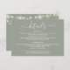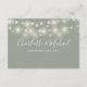 An elegant sage green wedding details information enclosure card featuring pretty string lights. Personalise with your special details set in stylish typography and your names and wedding date on the reverse. Designed by Thisisnotme©