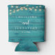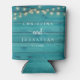Wedding Dinner and Party, Rustic String Lights, teal blue green wood background Can Cooler