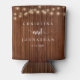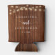 Wedding Dinner and Party, Rustic String Lights, dark wood background Can Cooler