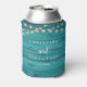 Wedding Dinner and Party, Rustic String Lights, teal blue green wood background Can Cooler