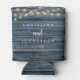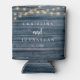 Wedding Dinner and Party, Rustic String Lights, navy blue wood background Can Cooler
