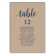 Wedding Dinner Guest Seating Table Chart Card, Modern Rustic Brown Kraft themes, Navy Blue Font.
