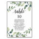 Wedding Dinner Guest Seating Table Chart Card, Modern Greenery Eucalyptus themes.