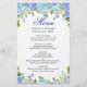 Wedding Dinner Menu Blue Hydrangea Floral Greenery