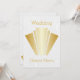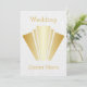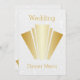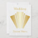 Wedding dinner menu gold coloured art deco design. Customise this gold coloured wedding menu with your wedding details and then have it printed and sent to you or instantly download it to your mobile device. Should you require any help with customising then contact us through the link on this page. Gold coloured art deco design personalised wedding menu that you can have printed or instantly downloaded