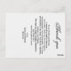 Wedding Dinner Menu With Thank you Note on back Postcard