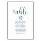 Wedding Dinner Guest Seating Table Chart Card, Modern Rustic Classy Navy Blue Script.