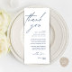 Share the love and show your appreciation to your guests, when they sit down at their seat and read this personalised classy navy blue charming thank you place card. It's a wonderful way to kick off your special day celebration! This card is sure to set the tone for an unforgettable event. The thank you card features modern design script theme, adding a touch of timeless elegance to your celebration. Designed by TeeshaDerrick