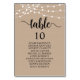 Wedding Dinner Guest Seating Table Chart Card, Modern Rustic Script, String lights, brown kraft background