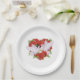 Paper dinner plate shown with a lovely red roses and doves heart shape print. Shown in 9" size. Sold in package of eight. Customise this plate or buy as is.