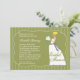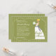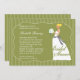 Modern invitation features a wedding dress with the words "Bridal Shower" in an ornate frame and a stripes pattern background. Fun design ideal for a young bride with a taste for fashion. Stylish and eye catching invitation.