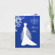 Elegant bridal dress, swirls and chandelier set against royal blue background Wedding Thank You Note Card