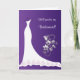 White wedding dress, silver floral butterfly on a purple background Bridesmaid request card.