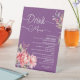 Wedding Drink Menu Deep Purple Pink Peony Pedestal Sign
