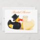 Bride and groom rubber ducks kissing. Top hat and tails with pearls. Cute wedding invitation or card that can be customised with your own text, names, date and images.