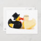 Two cute yellow rubber ducks dressed as a bride and groom. Top hat and tails with star tiara garland. Two kissing ducks with customisable text for your own special message, names, save the date or add your own image. Want to make some more changes? Click 'customise' to change text font, colour and size or reposition text and images.