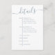 This simple details timeline enclosure card with a dusty blue colour scheme features a modern wedding details simple timeline, with dusty blue light coneflower blue, a stylish trendy calligraphy script text, with QR code rsvp website online, a wedding guest response web address, with more details information info URL, a simple minimalist minimal style design, simple classy typography web address, a guest details and information internet, simple invitation enclosure card