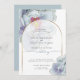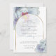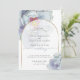 Wedding INVITATION | Modern text fits nicely inside this beautiful sheer white gold edged arch frame that shows the underlying fantasy peony flower in dusty blue and lilac and edged in gold - back is coordinating colour - original artwork © by WhimsicalArtwork™.