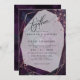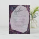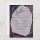 WEDDING INVITATION | Hand painted jaspé in shades of plum purple smokey lilac and dusty blue - accented with rose gold nuggets at the corners and a crystal style frame in rose gold with a sheer white centre highlighting the invitation text. Handwritten script calligraphy text on the diagonal "together" at the top allows a warm personal appeal - easy to personalise template.