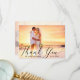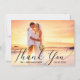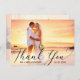 Send your love and thanks to your wedding guests in style with this simple elegant flat personalised photo thank you card. This simple typography design template features your photo with the words "Thank You" in a modern black script with your name and date below for you to customise. The back of the card has another photo background with an opaque overlay your thank you message and signature. I loved creating this for you. Best wishes on your marriage! Designed by artist ©Susan Coffey.