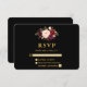 Modern Elegant Watercolor Burgundy Floral, Black and Gold Wedding RSVP Card includes burgundy roses, pink roses and botanical greenery.