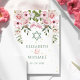 A floral bouquet in pink hues and leaf foliage is the basis for this elegant custom Wedding invitation.