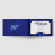 Exquisite blue roses, gold filigree, white satin, and a simulated royal blue metallic foil background all come together in this luxurious wedding design. Personalise the guestbook with your own details for your special day.