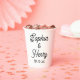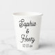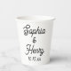 These elegant script modern typography black and white paper cups make the perfect addition to any of your wedding events! Personalise with the bride and groom names and wedding date.