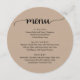 Modern Rustic Brown Kraft, Round Plate shapes, Wedding elopement Dinner Menu. A perfect bar menu for your big day. You can change the script font colours and change the menu contents and fonts to meet your needs.