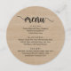 Modern Rustic Brown Wood, Round Plate shapes, Wedding elopement Dinner Menu. A perfect menu for your big day. You can change the script font colours and change the menu contents and fonts to meet your needs.
