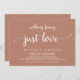 Mark the beginning of your forever with elegance using our contemporary rustic terracotta earthy brown themed wedding elopement celebration invitation card, "Nothing Fancy Just Love". Perfect for couples extending their joyous occasion, this invitation exudes sophistication with a hint of playfulness, setting the stage for a memorable event. Adorned with a timeless modern script design theme, it adds a touch of refined charm to your festivities. Crafted by TeeshaDerrick, this invitation promises to beautifully capture your love story.