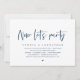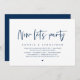 Modern Navy Blue Script themed, wedding elopement invitation card (Now let's party). It is perfect for your wedding elopement reception / post wedding celebration party. Add your details in matching black font / lettering.