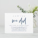 Modern Navy Blue Script themed, wedding elopement invitation card (oh yes we did). It is perfect for your wedding elopement reception / post wedding celebration party. Add your details in matching font / lettering.